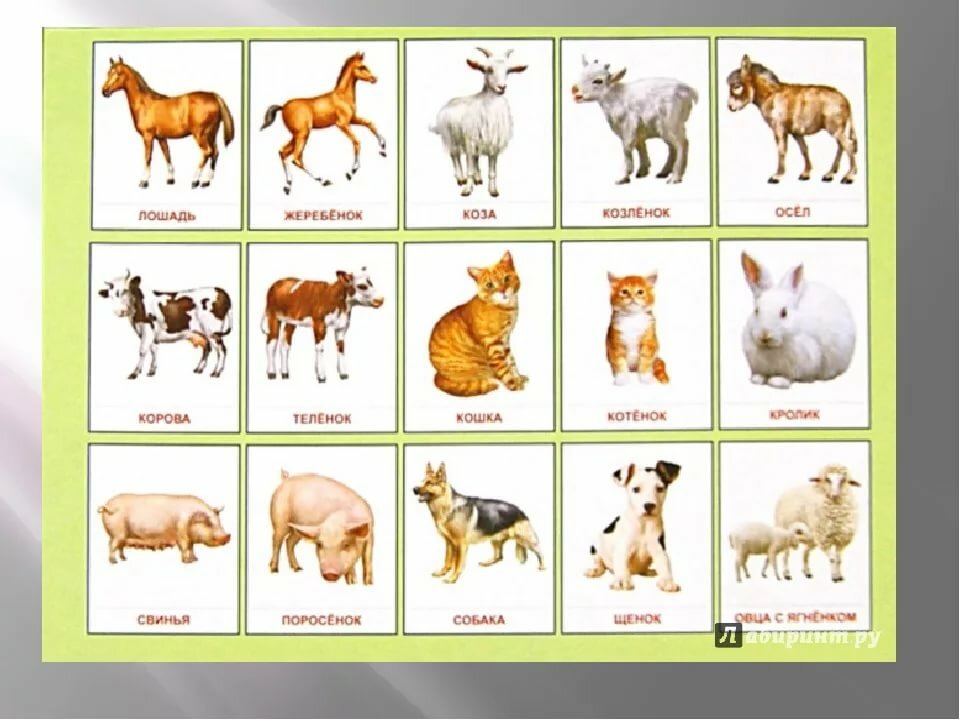 Назови детёнышей домашних животных:
